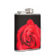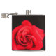This flask has a rose pictured on it.