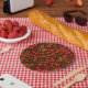 Rose hips, brown and red paper plate