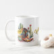 Jolie tasse de souvenirs Texas avec des graphiques de jolies bottes cowgirl colorées, cactus et roses jaunes. Texte, sur le devant de la tasse lit, Rose Jaune du Texas, et peut être personnalisé pour lire ce que vous voulez.