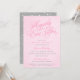 Fairytale "Happily Ever After" nuptiale invitations de douche en rose et gris, avec de beaux fleuris typographiques. Le texte du script dit "Heureusement toujours après" en rose, avec un design étoilé sur l'arrière.