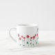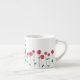 A beautiful illustration of long green stemmed roses standing upright with whimsical abstract rose buds set in a pattern around the base of the mug.
