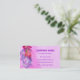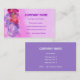 Joli carte de visite avec un design floral semi-abstrait dans les tons rose, bleu et mauve sur un arrière - plan rose, aux lettres violettes. Le verso est violet avec lettrage blanc. Prêt pour vous à customiser avec vos propres détails.