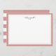 Our chic personalized stationery flat cards have a rosy mauve pink border with your name or choice of personalization gracing the top in charcoal grey modern script lettering. Cards reverse to horizontal pink and white stripes.