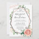 Faire-part de mariage géométrique Rose moderne en or. Ces invitations de feuillage verdoyant feront le tour! cet invitation personnalisable dispose d'un cadre géométrique moderne avec parties scintillant or Rose et noir. Les bordures sont ornées de feuillage vert comme l'eucalyptus, les baies et les fleurs roses roses et crème. Les côtés sont ornés d'une parties scintillant d'or Rose. Cela fait un grand invitation de feuillage moderne. Trouvez d'autres invitations à un mariage sur le bois à l'adresse https://www.zazzle.com/oddlotweddings Cliquez simplement sur le bouton "customiser" pour plus de personnalisation.