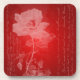Cork Coaster with an image/picture of a rose that looks etched on a pretty red background. Perfect Valentine gift as well as anniversary, wedding, bridal shower or housewarming gift.