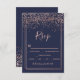 Rose or confetti marine bleu typographie rsvp mariage invitation avec double rose or géométrique bordure .Parfait pour une soirée de mariage moderne et élégante.
