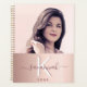 Un faux or rose, un arrière - plan à l'aspect métallique rose. Personnalisez et ajoutez votre propre photo, un nom, une lettre monogramme et une année. Le nom est écrit en or rose foncé avec un grand script de style moderne écrit à la main avec des swashes. Parfait pour l'école, le travail ou l'organisation de votre vie personnelle/familiale. Pour que les swashes ne suppriment que le nom de l'échantillon, laissez les espaces ou les émoticônes devant et après le nom
