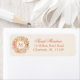 Jolie pêche, rose orange et couronne florale est personnalisée avec l'initiale de votre nom de famille. Votre nom est ajouté dans un script élégant et votre adresse est en italique. Arrière - plan est une pêche assez pâle.
