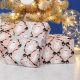 This roll of gift wrap is sweet and a little bit spooky with a pattern of happy little ghosts afloat on a soft blush pink rose background among a diamond pattern of black bows that give a girly gothic coquette vibe. While Halloween isn't a huge gifting holiday, there are lots of reasons to be generous and on theme for Little Boo baby showers and October birthday parties.