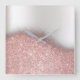 Rose Pink Glitter Silver Grey Minimal Metallic Square Wall Clock