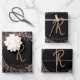 Rose Pink Gold & Black Glitter Frame Monogram Wrapping Paper Sheet