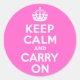 Rose Pink Keep Calm and Carry On Classic Round Sticker