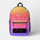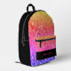 Rose pink orange purple glitters sparkles black Custom name Printed Backpack. Beautiful girly faux glitter sparkles. Please note we use photo of sparkles, not actual glitter! No messy glitter to the touch!