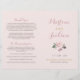 A soft pink peony with scattered petals and delicate greenery adorns this romantic bohemian ceremony program on a dusty rose background. Your names appear in warm script, with the gentle bloom creating a beautifully feminine focal point. Inside pages are fully customizable for your bridal party, ceremony order, and a personal thank you message on the back cover. Programs are printed on text-weight paper and arrive flat, requiring a simple center fold.