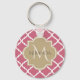Rose Pink Quatrefoil Pattern With Big Tan Monogram Keychain