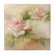 Roses and buds are framed by a mottled, aged background in pastel yellow, pink, green and brown colours.