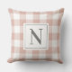 Rose Pink White Gingham Check Monogram Initial Throw Pillow