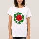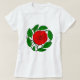 Red Rose graphic on women's long-sleeved white t-shirt.