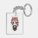 A delightful double-sided keychain design of a kawaii rose-headed character dressed like a charming gentleman, holding a rose and surrounded by tiny hearts. Perfect for romantic gifts or floral lovers with a cute twist.