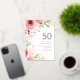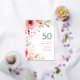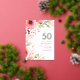 Une belle bordure d'aquarelle fleurie rose corail encadre cette feuille d'or 50ème anniversaire invitation!