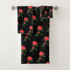 motifs floraux traditionnels de nombreux roses d'aquarelle rouge avec tiges vertes et feuilles sur serviettes noires