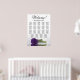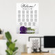 Améliorez l'élégance, le raffinement et le charme de votre réception de mariage avec ce magnifique tableau de sièges. Ce superbe design floral contemporain présente un rose royal violet romantique à longue tige reposant horizontalement et se reflétant dans un bassin d'eau serein. Il peut accueillir jusqu'à 190 convives, assis à 19 tables avec 10 couverts par table. Le titre gracieux de la calligraphie dit "Bienvenue ! Veuillez trouver votre table" avec la place pour les noms du couple et la date du mariage en bas.