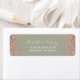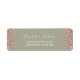 Les bords de cette élégante étiquette d'adresse de retour mariage moderne présentent une conception rose en faux parties scintillant or. Le texte personnalisable combine écriture crème et polices de caractères sur cuivre sur un arrière - plan vert sage.