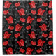 This decorative design has a stylized rose from vintage illustrations, and little skulls. Red and black floral pattern.