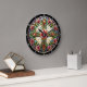 This exquisite wall clock features a beautiful stained glass design centred around a cross, adorned with elegant pink roses and lush green leaves. The delicate artistry and serene colour palette create a captivating and inspiring piece, perfect for adding a touch of grace and faith to any room. Edit colour of the clocks numbers in the Design tool to your favored colours.
