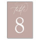 Simple and chic table number cards in earth tone rose taupe and white make an elegant statement at your wedding or event. Design features handwritten calligraphy script lettering with your table number in classic numerals.