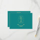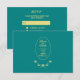Ajoutez une touche élégante à vos invitations de mariage avec cette carte de réponse RSVP mariage turquoise et or. La façade est ornée d'un dessin rose accompagné de "Save the Date", du nom du couple et de la date de la cérémonie du mariage. Les détails de la réponse sont au verso, y compris la date limite pour le PPR et la sélection des choix de repas. Utilisez le modèle pour personnaliser.