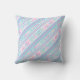 Un joli oreiller ou coussin à lancer féminin, avec un motif en diagonale rose, turquoise et blanche rayures de transats et roses roses : une partie de la collection Posh & Painterly 'Summer Days'.