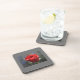 Dessous de verre en plastique avec liège à dos avec une photo de rose rouge. Parfait pour les boissons chaudes ou froides.