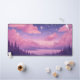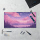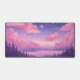 Les étoiles violettes roses whimsical kawaii art donnant sur le lac avec des arbres silhouettes au premier plan