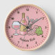 Rose wine composition. Bottle, glass, corkscrew and grapes. Custom background colour. Custom text.