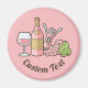 Rose wine composition. Bottle, glass, corkscrew and grapes. Custom background colour. Custom text.