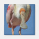 Closeup roseate Spoonbill (Platalea ajaja) seen from front with its big beak on blue sky background