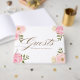 Un livre d'or mariage élégant et fantaisiste avec des illustrations d'aquarelle rose de pivoines et de roses. Il s'agit d'une partie d'un ensemble de mariages. Des éléments correspondants sont disponibles.