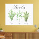 Rosemary, Thyme, Sage, Herbs canvas print. Hand painted illustration. Kitchen, restaurant décor. Gift for her/chef.