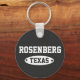 Tough black keychain with the text: Rosenberg Texas. In white and black characters. Beside Texas 2 ASTRE stand.