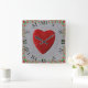 Quadratische Wanduhr Rosenrahmen mit Herz Römische Ziffern