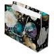 White rose and iridescent bubble alcohol ink abstract design on black