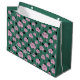 Roses and dots on dark green. large gift bag
