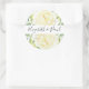 Seal your invitation envelopes or favours with these beautiful watercolor floral wedding stickers featuring watercolor yellow roses, olives and foliage. Your names are written in hand written calligraphy typeface.