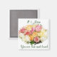 It was a bit smaller than expected, but I was too excited to check dimensions. The product itself send well printed though the grey text is a bit paint. Magnet worked perfectly on my fridge.