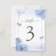 Roses Bleu Argent Élégant Numéro de table Carte