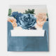 A bright, bold floral of roses in shades of dusty blue and peach is the focal point for many of the pieces of this wedding suite that also features elegant script text and modern design layouts. The matching wedding envelope shown here has an upper border of roses on the interior and a beautiful watercolor abstract on the exterior in rich burgundy and plum. Easily enter your names and address using the provided template. Search ID584 to see all the matching pieces in this beautiful wedding set.