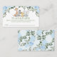 Pretty floral boy's safari themed baby shower diaper raffle enclosure card featuring a watercolor giraffe, elephant, zebra and baby lion. This safari baby shower diaper raffle ticket also features some foliage and blue roses. It's ideal for boy's a safari or wild one themed baby shower.