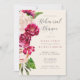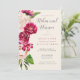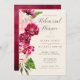 A bright, bold floral of roses in shades of burgundy and cream is the focal point for many of the pieces of this wedding suite that also features elegant script text and modern design layouts. The matching rehearsal dinner invitation shown here features all of the above as well as a beautiful watercolor abstract on the reverse in rich burgundy and plum. Easily add the bride and groom's names and event details using the provided template. Search ID584 to see the matching products and other colour options for this design.