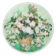 Roses was painted shortly before Vincent Van Gogh's release from the asylum at Saint–Rémy. He felt he was coming to terms with his illness and himself. This is one of two rose paintings Van Gogh made at that time. It is among his largest and most beautiful still lifes, with an exuberant bouquet in the glory of full bloom. Although he sometimes assigned certain meanings to flowers, Van Gogh did not make a specific association for roses. It is clear, though, that he saw all blossoming plants as celebrations of birth and renewal as full of life. That sense is underscored here by the fresh spring green of the background. The undulating ribbons of paint, applied in diagonal strokes, animate the canvas and play off the furled forms of flowers and leaves. Originally, the roses were pink the colour has faded and would have created a contrast of complementary colours with the green.